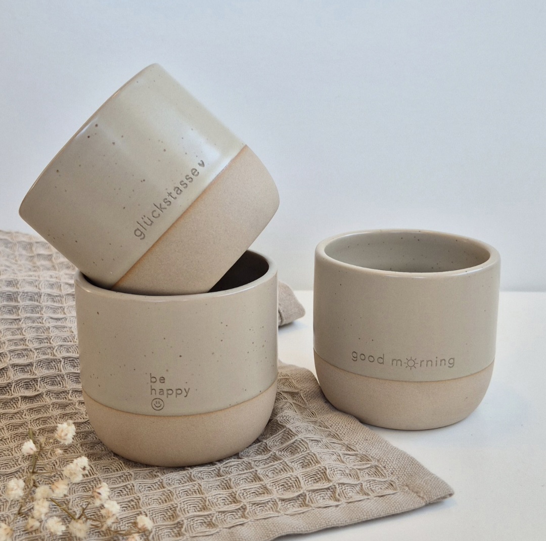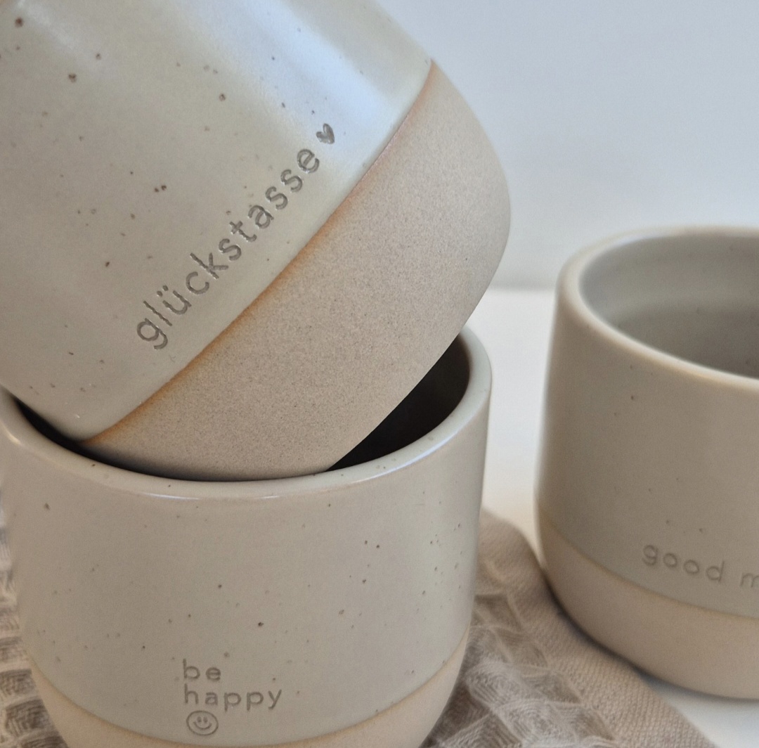 Eine wunderschöne henkellose Tasse als einzigartiges Geschenk für besondere Anlässe. Hochwertig und ideal für Kaffee, Tee oder Kakao, wird sie mit deinem Wunschtext zu einem echten Hingucker im Alltag.