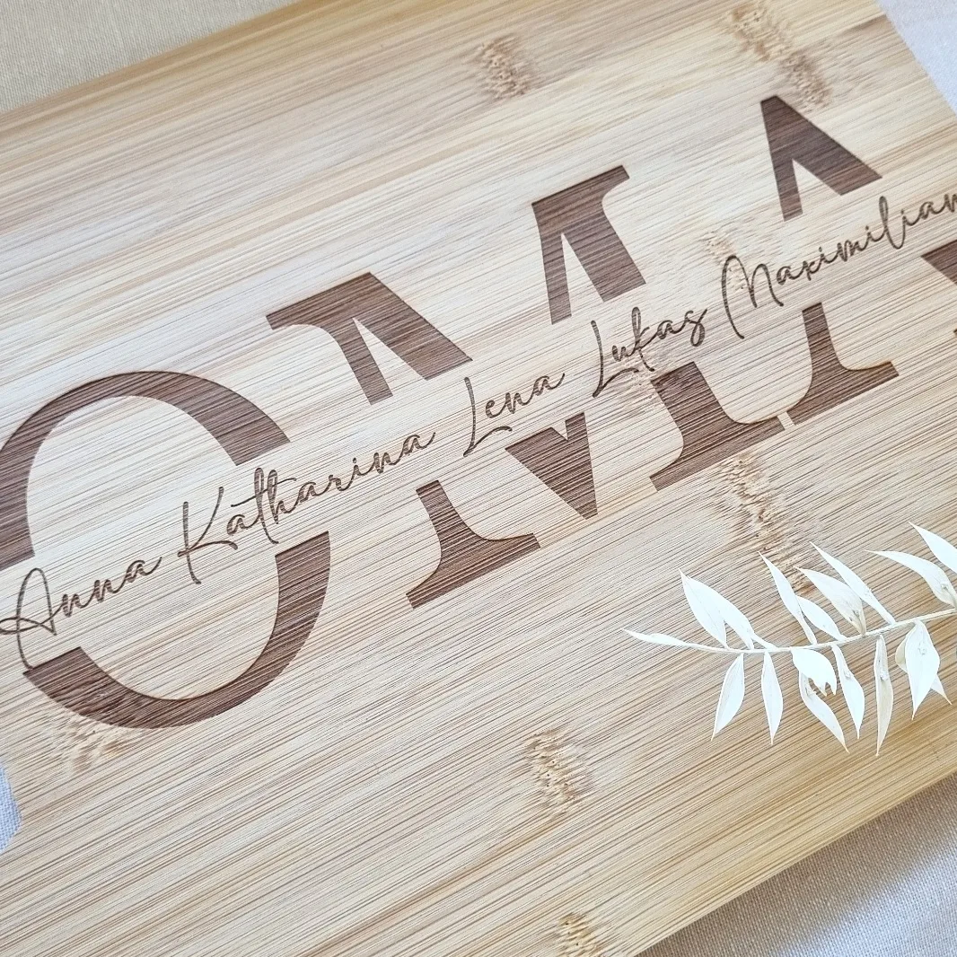 Ein Geschenk für die liebe Oma, die schon alles hat und sich nichts wünscht. Da passt doch ein gelasertes Schneidebrett mit einer persönlichen Note perfekt in die Küche.